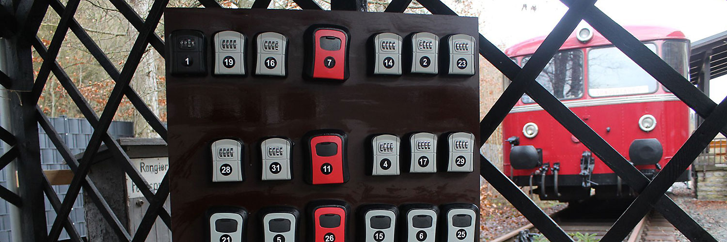 In den Tresorschlössern findest du jeweils Hinweise, was der Bahnhofsvorsteher einstmals herausgefunden und bis heute geheim gehalten hat. Gelingt es euch, diese Hinweise so zusammenzufügen, dass ihr das Rätsel lösen könnt, welches Verbrechen seinerzeit im Bahnhof Ahütte begangen oder geplant wurde?